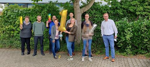 Nun blicken wir mit Stolz auf unser erstes Jahr Inklu zurück. Die Zeit ist wie im Flug vergangen! Als Zeichen der Dankbarkeit für ein hervorragendes erstes Jahr und die tolle Zusammenarbeit haben die Teamleitungen der drei Bereiche -IT Service, Hausmeisterservice und Büroservice- sich etwas ganz Besonderes ausgedacht. Dieser Geburtstag sollte gebührend gefeiert werden! Gesagt getan: das UG glich einem Partyraum, Girlanden und Luftballons durften natürlich nicht fehlen. Zudem gab es ein üppiges Brunch Buffet, bei dem kein Wunsch offenblieb. Von Frikadellen über Rohkost zu Antipasti sowie reichlich Auswahl an Wurst und Käse war alles vorhanden. Der ganze Tag galt einzig und allein dem Team Inklu! Es war viel Zeit für intensive Gespräche und den Austausch der verschiedenen Bereiche. Zudem haben wir über Wünsche für die Zukunft im Inklusionsunternehmen gesprochen. Zusammenfassend kann festgehalten werden, dass sich das gesamte Team wünscht, dass das Inklusionsunternehmen weiterhin wächst und der Teamzusammenhalt über gemeinsame Aktivitäten gestärkt wird. Da das Inklusionsunternehmen den Bereich Arbeit bei der Lebenshilfe Essen abdeckt, haben wir natürlich schon die ein oder andere Vorbereitung für den kommenden Tag der Arbeit getroffen. Zum Abschluss gab es einen leckeren, selbstgebackenen Kuchen in Form einer 1!! Das Team Inklu freut sich auf die weitere gemeinsame Zeit!