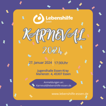 Anmeldungen nehmen wir unter karneval@lebenshilfe-essen.de oder der Telefonnummer: 0151-17591708 entgegen.